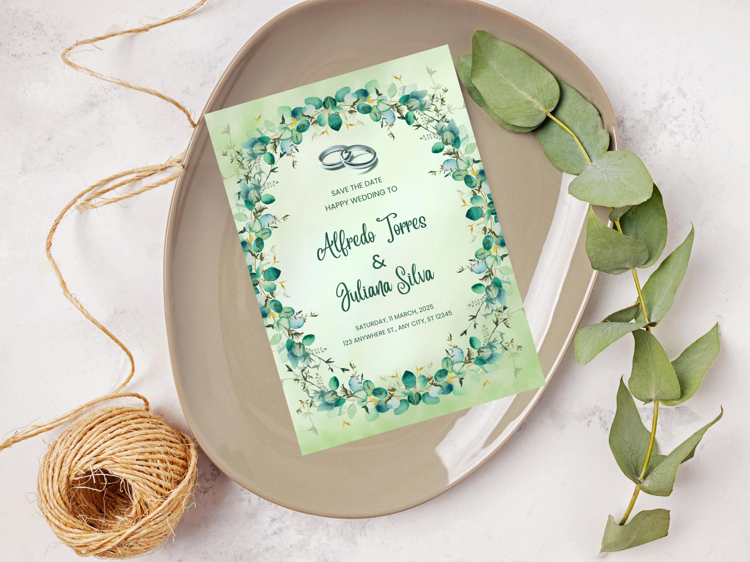 Customize names, dates, venues, and wording effortlessly. Perfect for invitations, save-the-dates, or rehearsal dinner cards.
