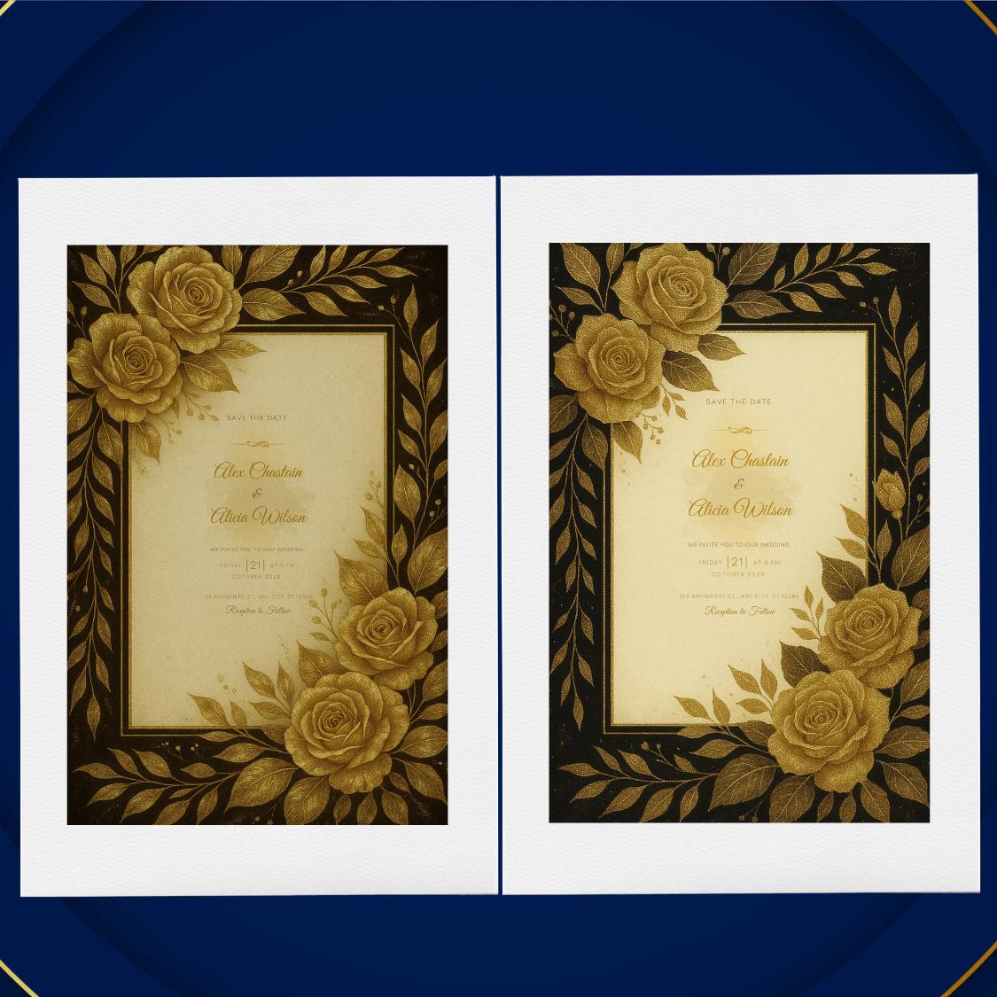 Make your special day unforgettable with this stunning set of luxury wedding invitation templates. Featuring two beautifully crafted designs in black, gold, and floral themes, this set is perfect for couples seeking modern elegance with a touch of glamour.